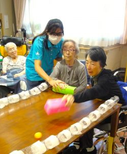 続いて風船パタパタゲーム!必死になって風船をパタパタし、「おもしろいね。」と利用者様から声がありました。