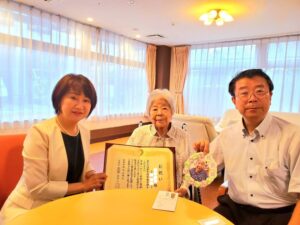 9月15日の敬老の日に、利用者様の100歳のお祝いで豊島区の高際みゆき区長が表彰に来てくださいました。