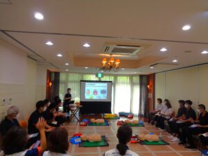9/17杉並消防署ご協力のもと、救命講習会をおぎくぼ紫苑で行いました。 心肺蘇生・AEDの活用などの応急手当についてレクチャーして頂きました。 万が一の緊急事態に備え、適切な方法を身に付ける良い機会となりました。 講習で得た内容を今後に活かして参ります。