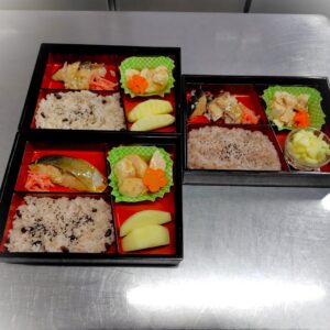 お誕生日月の利用者様へ、昼食をお弁当箱にご用意し、手作りの「のし」をつけてユニットへお届けしています。