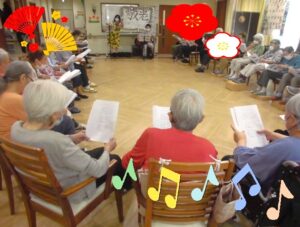 音色に合わせて 「ふるさと」や「幸せなら手をたたこう」などご利用者様と職員で合唱🎵