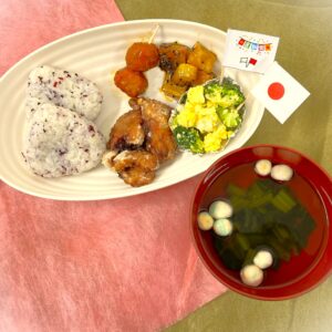 運動会前のお昼ご飯は、美味しそうなお弁当風メニューです。