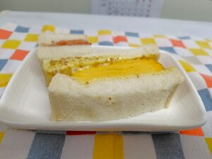 11月22日の昼食は、厚焼たまごと苺ジャムのサンドイッチでした。