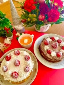 スポンジケーキに生クリームやイチゴをトッピングし、美味しく召し上がっていただきました。