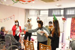クリスマスと言えば「ジングルベル」。ハンドベルのリズムに合わせて、利用者様も鈴と手拍子で参加され、楽しんで歌われました。
