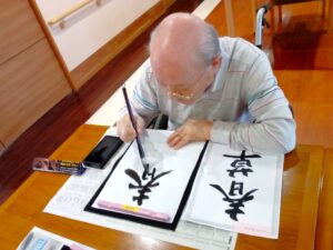 「新春来福」「春草」といった新年にふさわしい熟語の中からご自身で選んで頂き、書初めを行いました。皆様達筆で、素晴らしい仕上がりとなりました。