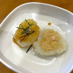 ねりごま、砂糖、しょうゆ、みりんの合わせタレ、きな粉の2種類をご用意いたしました!