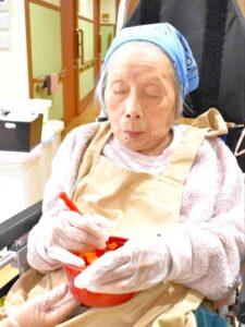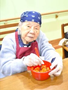 2月、旬の野菜を楽しもう!という事で、おぎくぼ紫苑の1ABユニットでは、にんじんホットケーキを作って食べました。