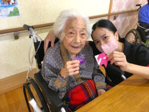 おぎくぼ紫苑では、EPAや特定技能など多くの外国人職員が従事しております。慣れない日本語や文化に戸惑いながらも、ご利用者と真摯に向き合い日々の支援に励んでおります。